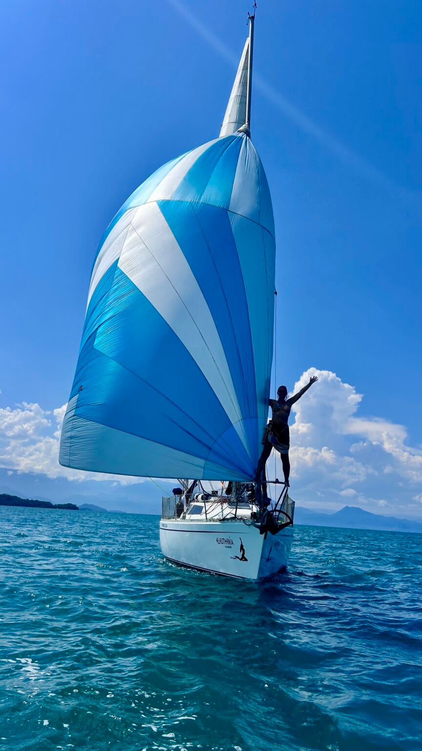 O Eleutheria não é apenas um veleiro, é uma sala de aula flutuante. Durante o treinamento, os alunos tem contato direto com os instrumentos de bordo, manobras de atracação, regras de navegação e procedimentos de segurança, tornando o aprendizado muito mais prático, dinâmico e eficaz.